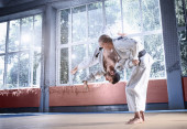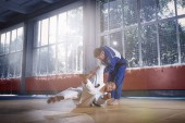 Zdjęcie "Dwóch zawodników judo Wyświetlono umiejętności techniczne podczas uprawiania sztuk walki w klubie walki" może być wykorzystywane do celów osobistych i komercyjnych zgodnie z warunkami zakupionej licencji Royalty-free. Obraz jest dostępny do pobrania w jakości wysokiej rozdzielczości do 5760x3840.