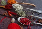 Zdjęcie "Różnych indyjskich przypraw w drewniane i łyżki i metalowe miski, nasion, ziół i orzechy na ciemny kamień tabeli. Kolorowe przyprawy, widok z góry, miejsca na tekst. Żywności ekologicznej, zdrowego stylu życia." może być wykorzystywane do celów osobistych i komercyjnych zgodnie z warunkami zakupionej licencji Royalty-free. Obraz jest dostępny do pobrania w jakości wysokiej rozdzielczości do 5760x3840.
