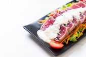 świeżego tuńczyka surowego z sałatką warzywną i sosem - zdrowa żywność