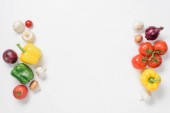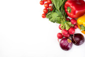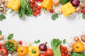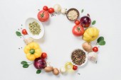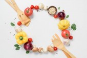 Widok z góry dojrzałych warzyw i ziół na białym tle