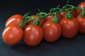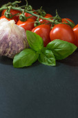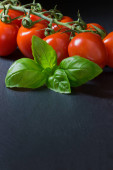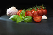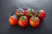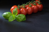 Zdjęcie "Niskie klawiszu strzału krzaków pomidorów leżącego na stole czarny kamień. Wszystko to na ciemnym tle. Pionowo." może być wykorzystywane do celów osobistych i komercyjnych zgodnie z warunkami zakupionej licencji Royalty-free. Obraz jest dostępny do pobrania w jakości wysokiej rozdzielczości do 5760x3840.