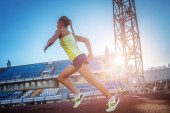Zdjęcie "Dwóch zawodników lekkoatletka działa na bieżni wyścigu podczas treningu na stadionie w Lekkoatletyce." może być wykorzystywane do celów osobistych i komercyjnych zgodnie z warunkami zakupionej licencji Royalty-free. Obraz jest dostępny do pobrania w jakości wysokiej rozdzielczości do 5760x3840.