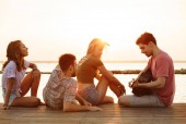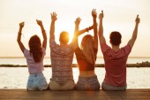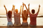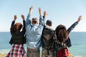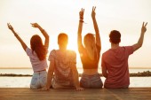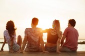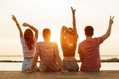 Zobacz zdjęcie grupy przyjaciół cztery miłości pary spaceru na świeżym powietrzu na plaży z powrotem.