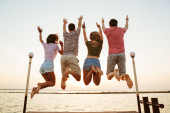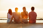 Zdjęcie "Zobacz zdjęcie grupy przyjaciół cztery miłości pary spaceru na świeżym powietrzu na plaży z powrotem." może być wykorzystywane do celów osobistych i komercyjnych zgodnie z warunkami zakupionej licencji Royalty-free. Obraz jest dostępny do pobrania w jakości wysokiej rozdzielczości do 5760x3840.