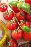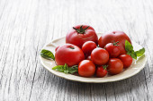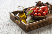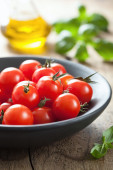 Sałatka z pomidorków koktajlowych. Domowe jedzenie. Koncepcja na smaczny i zdrowy posiłek.