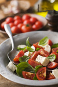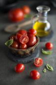 Zdjęcie "Sałatka z pomidorków koktajlowych. Domowe jedzenie. Koncepcja na smaczny i zdrowy posiłek." może być wykorzystywane do celów osobistych i komercyjnych zgodnie z warunkami zakupionej licencji Royalty-free. Obraz jest dostępny do pobrania w jakości wysokiej rozdzielczości do 5760x3840.