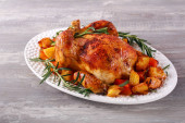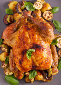 Zdjęcie "Kurczaki pieczone z warzywami pieczona na talerzu" może być wykorzystywane do celów osobistych i komercyjnych zgodnie z warunkami zakupionej licencji Royalty-free. Obraz jest dostępny do pobrania w jakości wysokiej rozdzielczości do 5760x3840.