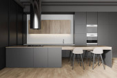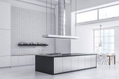 Zdjęcie "Biała ściana kuchni wyposażonej w ciemne, drewniane podłogi, szafy białe i blaty i wyspą z umywalką. makiety 3D renderowania" może być wykorzystywane do celów osobistych i komercyjnych zgodnie z warunkami zakupionej licencji Royalty-free. Obraz jest dostępny do pobrania w jakości wysokiej rozdzielczości do 5760x3840.