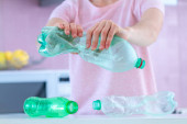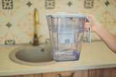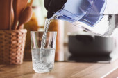 Kobieta wylewa świeżej wody do szklanki z lufy
