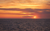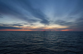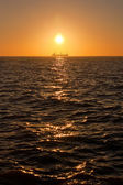 Odległe statek handlowy, żeglarstwo w otwartych Morza Bałtyckiego na zachód słońca