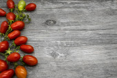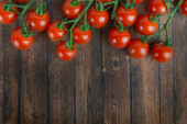 kolorowe dojrzałe pomidory na drewnianym stole z miejsca kopii
