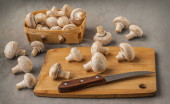 Świeże, surowe champignon royal. Grzyby na tle rustykalnym