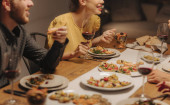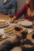 Przyjaciółmi świętować razem i rosnące okulary na obiad party.
