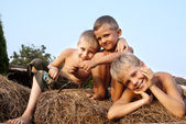 brat i siostry jedzenie jabłek na zielonej trawie w parku