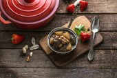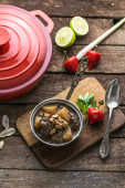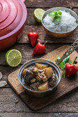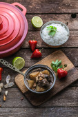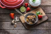 Massaman curry wołowiny na curry mleka wood background.coconut.