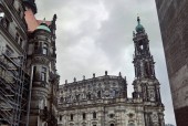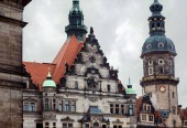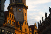 Zdjęcie "Niski kąt Zobacz stare Drezno katedry z zegarem, posągi na dachu budynku w Drezno, Niemcy" może być wykorzystywane do celów osobistych i komercyjnych zgodnie z warunkami zakupionej licencji Royalty-free. Obraz jest dostępny do pobrania w jakości wysokiej rozdzielczości do 5760x3840.