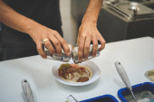 Zdjęcie "Męskie dłonie serwujemy potrawy na stół biały" może być wykorzystywane do celów osobistych i komercyjnych zgodnie z warunkami zakupionej licencji Royalty-free. Obraz jest dostępny do pobrania w jakości wysokiej rozdzielczości do 5760x3840.