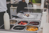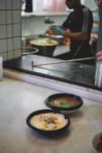 Proces gotowania potrawy na stół materiałów informacyjnych