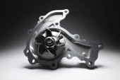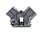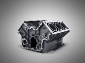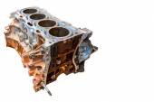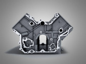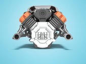 Blok cylindrów z samochodu z v6 silnik renderowania 3d na niebieskim tle
