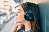 Zdjęcie "Www radia muzyki pojęcie. Młoda Ładna dziewczyna z słuchawki." może być wykorzystywane do celów osobistych i komercyjnych zgodnie z warunkami zakupionej licencji Royalty-free. Obraz jest dostępny do pobrania w jakości wysokiej rozdzielczości do 5760x3840.