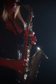 Saksofonista. Muzyk jazzowy saksofonista kobieta gra gracz sax