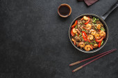 Steków tofu z ryżem i mizerią na czarnym tle, kopiować miejsca. Zdrowe posiłki Wegańskie wegetariańskie jedzenie meal z pieczone tofu smażony stek.