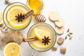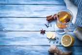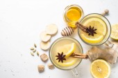 Gorąca herbata imbir z cytryny, miodu i przyprawy.