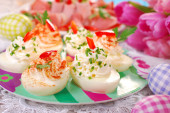 Śledź pikantne bułki z jabłkiem i korniszon na Wielkanoc