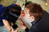 człowiek wylewanie swojej dziewczyny niektóre wina