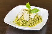 spaghetti z zielonym pesto