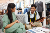 Zdjęcie "mężczyźni odzież sklep asystent i klienta dyskusji" może być wykorzystywane do celów osobistych i komercyjnych zgodnie z warunkami zakupionej licencji Royalty-free. Obraz jest dostępny do pobrania w jakości wysokiej rozdzielczości do 5760x3840.