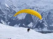 Paralotniarstwo na śniegu na szczycie Europejskiej Alpach