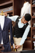 Zdjęcie "Krawiec, sprawdzanie wszystkie szczegóły nowej kurtki" może być wykorzystywane do celów osobistych i komercyjnych zgodnie z warunkami zakupionej licencji Royalty-free. Obraz jest dostępny do pobrania w jakości wysokiej rozdzielczości do 5760x3840.