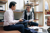 Zdjęcie "Wietnamski męskiej projektanci mody, omawianie materiału do nowej kolekcji" może być wykorzystywane do celów osobistych i komercyjnych zgodnie z warunkami zakupionej licencji Royalty-free. Obraz jest dostępny do pobrania w jakości wysokiej rozdzielczości do 5760x3840.