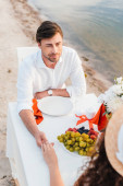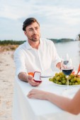 zdenerwowany kobieta czeka romantyczną randkę sam na seashore