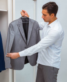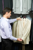 Zdjęcie "Skadrowana sprzedawca, pomagając klientowi wybrać garnitur" może być wykorzystywane do celów osobistych i komercyjnych zgodnie z warunkami zakupionej licencji Royalty-free. Obraz jest dostępny do pobrania w jakości wysokiej rozdzielczości do 5760x3840.