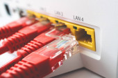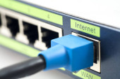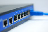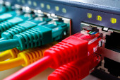w dużych Wieloportowa przełącznik jest wstawiony jeden czerwony kabel patch, przełącznik Isp i kabel