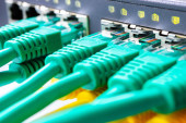 Zdjęcie "w dużych Wieloportowa przełącznik jest wstawiony jeden czerwony kabel patch, przełącznik Isp i kabel" może być wykorzystywane do celów osobistych i komercyjnych zgodnie z warunkami zakupionej licencji Royalty-free. Obraz jest dostępny do pobrania w jakości wysokiej rozdzielczości do 5760x3840.