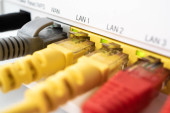 Zdjęcie "pracuje 24 portowy przełącznik w którym włożona jest żółty kabel, 19 port, przełącznik jest dostawcą intranetowych dostępu do sieci" może być wykorzystywane do celów osobistych i komercyjnych zgodnie z warunkami zakupionej licencji Royalty-free. Obraz jest dostępny do pobrania w jakości wysokiej rozdzielczości do 5760x3840.