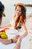 para piękny szczęśliwy tulenie przed romantyczną randkę na seashore
