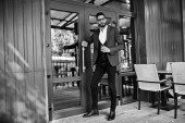 Zdjęcie "Stylowe, wysoki mężczyzna arabian modelu w białej koszuli, dżinsy i okulary stwarzane przy ulicy miasta. Broda atrakcyjnym facetem arab." może być wykorzystywane do celów osobistych i komercyjnych zgodnie z warunkami zakupionej licencji Royalty-free. Obraz jest dostępny do pobrania w jakości wysokiej rozdzielczości do 5760x3840.