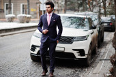 Zdjęcie "Stylowe, wysoki mężczyzna arabian modelu w białej koszuli, dżinsy i okulary stwarzane przy ulicy miasta. Broda bogaty atrakcyjnym facetem arab przeciwko suv biały samochód." może być wykorzystywane do celów osobistych i komercyjnych zgodnie z warunkami zakupionej licencji Royalty-free. Obraz jest dostępny do pobrania w jakości wysokiej rozdzielczości do 5760x3840.