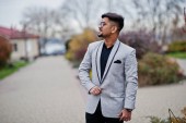 Zdjęcie "Stylowe, wysoki mężczyzna arabian modelu w białej koszuli, dżinsy i okulary stwarzane przy ulicy miasta. Broda bogaty atrakcyjnym facetem arab przeciwko suv biały samochód." może być wykorzystywane do celów osobistych i komercyjnych zgodnie z warunkami zakupionej licencji Royalty-free. Obraz jest dostępny do pobrania w jakości wysokiej rozdzielczości do 5760x3840.