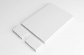 Książka kwadrat futerał mock nawet na białym na miękkie szare tło. ilustracja 3D.