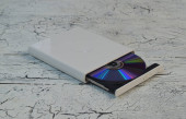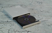 Płyt Blu-ray w niebieskim polu na białym tle. Widok z góry