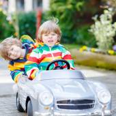Zdjęcie "Dwoje szczęśliwych dzieci bawiących się dużym starym samochodzikiem w letnim ogrodzie, na świeżym powietrzu. Chłopak prowadzi samochód z małą dziewczynką w środku. Śmiejące się i uśmiechnięte dzieci. Rodzina, dzieciństwo, koncepcja stylu życia" może być wykorzystywane do celów osobistych i komercyjnych zgodnie z warunkami zakupionej licencji Royalty-free. Obraz jest dostępny do pobrania w jakości wysokiej rozdzielczości do 5760x3840.