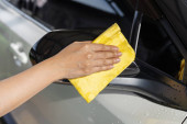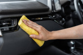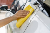 ręka z mikrofibry do czyszczenia wnętrza samochodu panel drzwi