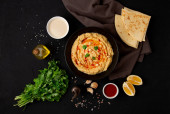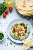 Zdjęcie "Arabski ciecierzyca Hummus i chleb Pita" może być wykorzystywane do celów osobistych i komercyjnych zgodnie z warunkami zakupionej licencji Royalty-free. Obraz jest dostępny do pobrania w jakości wysokiej rozdzielczości do 5760x3840.
