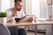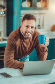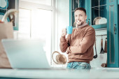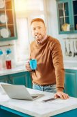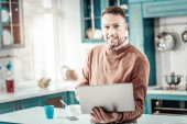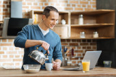 Zdjęcie "Pewni atrakcyjna człowiek stoi w kuchni" może być wykorzystywane do celów osobistych i komercyjnych zgodnie z warunkami zakupionej licencji Royalty-free. Obraz jest dostępny do pobrania w jakości wysokiej rozdzielczości do 5760x3840.