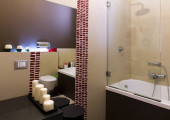Nowoczesna łazienka z podwójną umywalką. Wyroby sanitarne łazienka zawieszone
